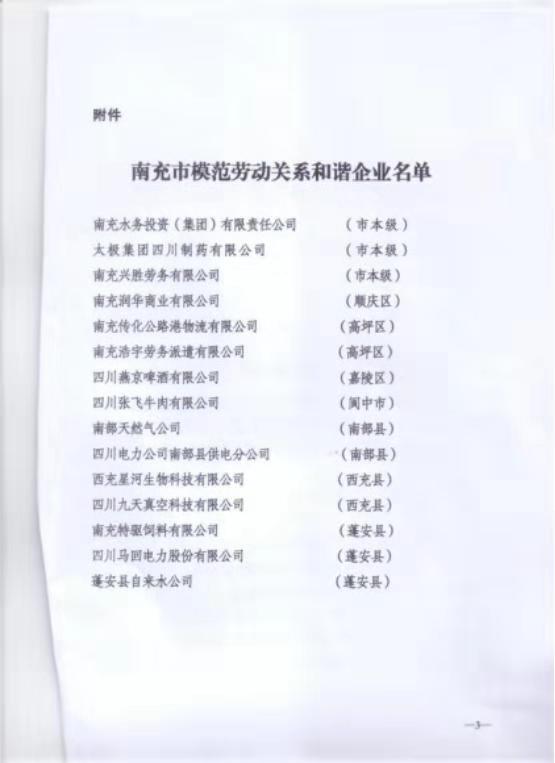 南充浩宇勞務(wù)被授予南充市模范企業(yè)